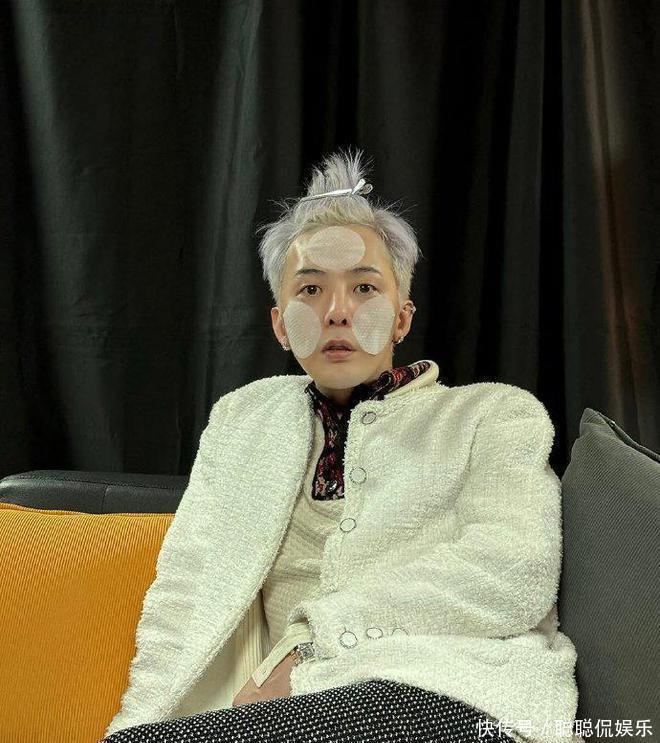 另一张照片里,龙哥脸上贴着多个圆形垫片口罩,慵懒地坐在沙发上。白色粗花呢夹克搭配经典格纹长裤,再加上头顶束起的发型,完美诠释了他独有的“随意却强烈”的风格。每一处细节都像是精心设计过的,连姿势和背景都充满艺术感,仿佛在告诉我们:“我的日常就是舞台,我的风格就是艺术。”